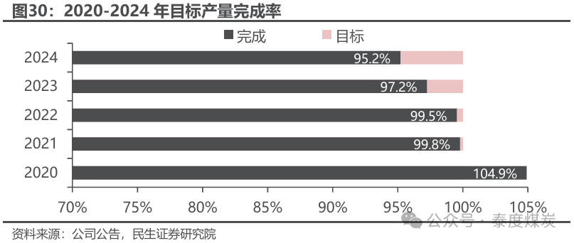 近年产量提升,目标产量完成率保持95%以上,预计2025年生产平稳。矿山历史产量来看,受铀价下跌影响,哈原工控股矿山2017年减产10%,2018-2020年减产20%,此外2020年同时受到新冠疫情影响,全球主要厂商不同程度停减产,哈原工实施3个月减产,因而在此期间矿山产量降幅明显。2021年7月31日,公司完成收购奥公司49%股权,当年持股矿山产量及包销量实现146.7%的大幅增长。2022-2024年,公司持股矿山合计产量分别为2598/2620/2757tU,同比增速+43.7%/+0.8%/+5.2%,近5年目标产量完成率均在95%以上。2023-2024年,奥公司受市场硫酸供应短缺影响,中矿均未完成年度生产计划,但扎矿逐步放量形成对冲,全年产量持续增长。展望2025年,伊矿由于锡尔达里亚河附近的矿段在现行立法下开采受限产量预计有所下降,但考虑扎矿将于年底实现一阶段达产500tU/年,将加速释放产量,预计全年总产量或较2024年平稳。