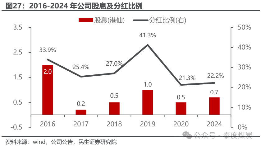2024年每股派发0.7港仙,分红比例22%。公司2006年首次年度分红,而后直至2015年均未有股息派发,2016年起公司分红比例维持20%以上,2021-2023年因业务发展的资金储备需要暂停派发。2024年,公司首次实行中期分红,中期每股派发0.3港仙,年度合计每股派发0.7港仙,分红比例22.2%。